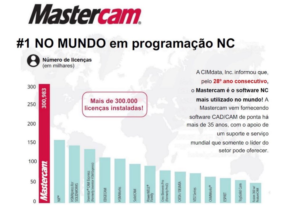 A Ascongraph fornece ao mercado brasileiro o software Mastercam desde 1988, que é o CAD/CAM mais utilizado em todo o mundo e continua sendo o preferido entre os programadores CNC.